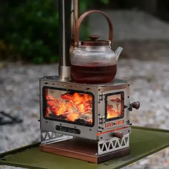 Portable Firewood Stove with 4-Side Window for Camping and Outdoor Cooking
